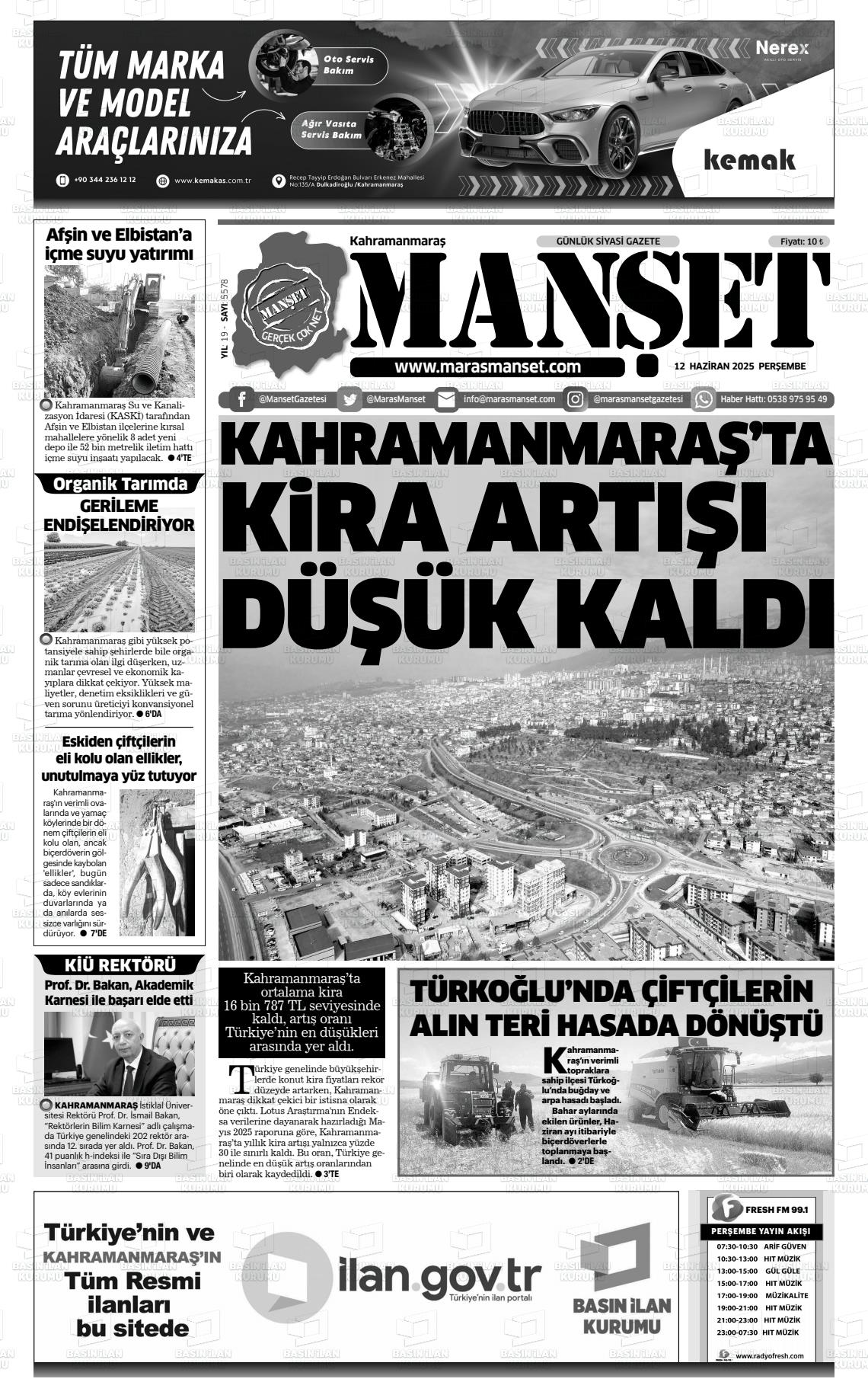 KAHRAMANMARAŞ MANŞET